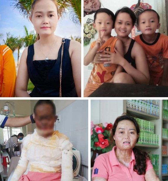 Hình ảnh chị Ngân trước và sau khi bị chồng tưới xăng thiêu sống để "chết chung"