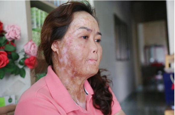 "Lúc đó lửa trên người chị cứ bốc cháy, chị kiệt quệ rồi mà nhìn bên phòng 2 đứa con, nếu mình bỏ cuộc thì tụi nhỏ cũng sẽ chết. Chị bật dậy kêu 2 đứa nhỏ chạy ra ngoài, không hiểu sao chị lại rất tỉnh táo, lúc lên xe máy để vào bệnh viện, chị còn xin được quay lại nhìn con, dặn chúng vài điều vì nghĩ mình sẽ chết. Ngồi xe 5km đường núi xuống bệnh viện, da thịt chị nó bắt đầu nứt ra, chân tay lạnh cóng…", chị Ngân rớm nước mắt.