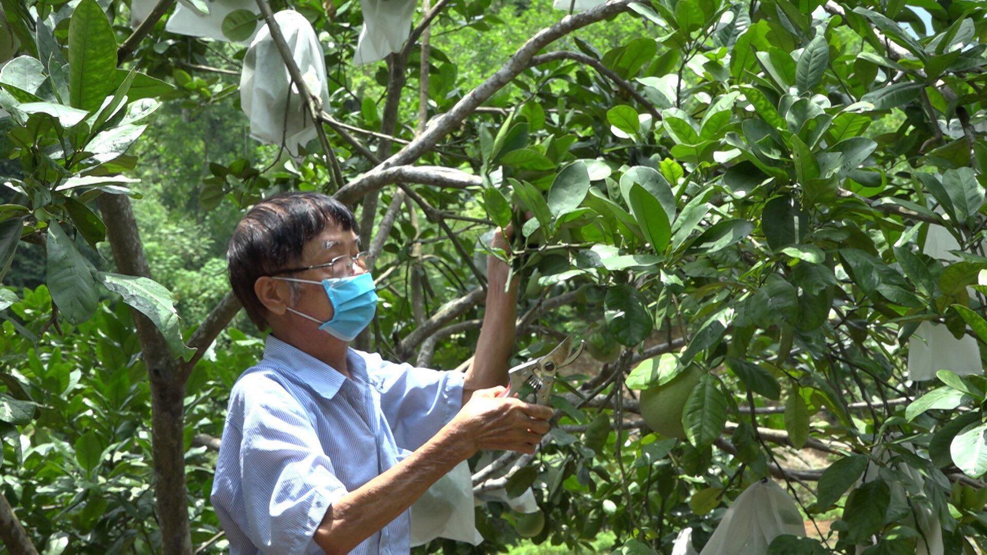 Ông Nguyễn Bách Chiến chăm sóc cây ăn quả.