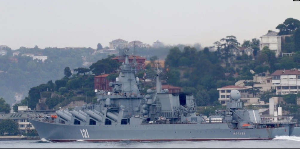 Soái hạm Moskva trong lần đi qua eo biển Bosphorus ở Thổ Nhĩ Kỳ năm 2021.
