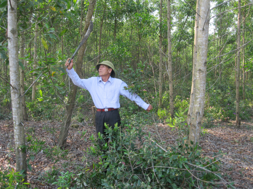 Ông Đào Văn Hộ chăm sóc rừng keo tai tượng.