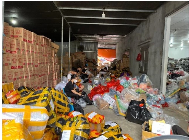Thời điểm đoàn liên ngành vào kiểm tra, tại kho hàng của ông Đ. có gần 20 công nhân đang đóng gói các đơn hàng đã được chốt trên các trang mạng xã hội Facebook mà cơ sở này lập ra.