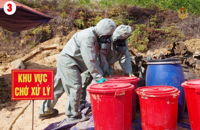 | Theo số liệu được công bố tại Hội thảo quốc tế đánh giá tác hại của chất độc hóa học Quân đội Mỹ sử dụng trong chiến tranh Việt Nam được tổ chức tại Hà Nội (tháng 8/2016), quân đội Mỹ đã sử dụng gần 80 triệu lít chất diệt cỏ, trong đó 61% là chất da cam, chứa 366kg dioxin- một chất độc hại nhất trong các chất độc mà con người biết đến. Bên cạnh việc sử dụng các chất diệt cỏ, Quân đội Mỹ còn ném vào lòng đất hàng nghìn tấn chất độc CS và các phương tiện, bom đạn có chứa chất độc CS, trong các kho vũ khí của chúng để lại còn rất nhiều loại đạn và các phương tiện có chứa chất độc hại như CS… Sẽ còn phải mất nhiều năm nữa mới có thể xử lý hết số đất bị nhiễm đi-ô-xin cũng như các loại phương tiện, đạn, dược chứa chất độc CS. Từ nhiều năm nay, Bộ đội Hóa học đã vượt qua muôn vàn khó khăn, nguy hiểm để có mặt ở các vùng đất nhiễm độc, kho đạn chứa chất CS còn sót lại để thực hiện việc xử lý loại chất độc chết người này. Việc xử lý chất độc này đòi hỏi một lượng kinh phí lớn và kỹ thuật rất phức tạp. Tôi đi theo các anh và đã ghi lại được hình ảnh công việc đặc biệt nguy hiểm và vất vả này của các cán bộ thuộc Viện Hóa học môi trường quân sự trong đợt xử lý chất độc CS tại xã Thủy Phù, thị xã Hương Thủy, tỉnh Thừa Thiên Huế mới đây. Vào giữa mùa Hạ, dưới cái nắng miền Trung oi bức, trong bộ quần áo bảo hộ nóng đến 38, 40 độ C, các chiến sĩ vẫn miệt mài thu gom từng thùng, can chất độc; cần mẫn, chuẩn xác từng động tác để tách được chất độc ra khỏi thân quả đạn. Việc này tiềm ẩn nhiều rủi do bởi đạn có thể phát nổ bất cứ lúc nào. Rất nhiều quả đạn sau khi được đưa lên khỏi mặt đất đã rỉ sét hoàn toàn, vì thế nó trở lên rất nguy hiểm do có thể phát nổ. Các chiến sĩ phải rất cẩn thận, từng động tác tách chất độc tỷ mỉ mới có thể hoàn thành công việc. Công việc của các anh đã kéo dài nhiều năm nay. Mặc dù nguy hiểm, kinh phí đảm bảo còn hạn chế, nhưng vượt lên tất cả là lòng nhiệt tình, ý thức trách nhiệm, sự chấp nhận hy sinh để đổi lấy bình yên cho Tổ quốc, hạnh phúc cho người dân, đó cũng là tâm nguyện của Bộ đội Hóa học.