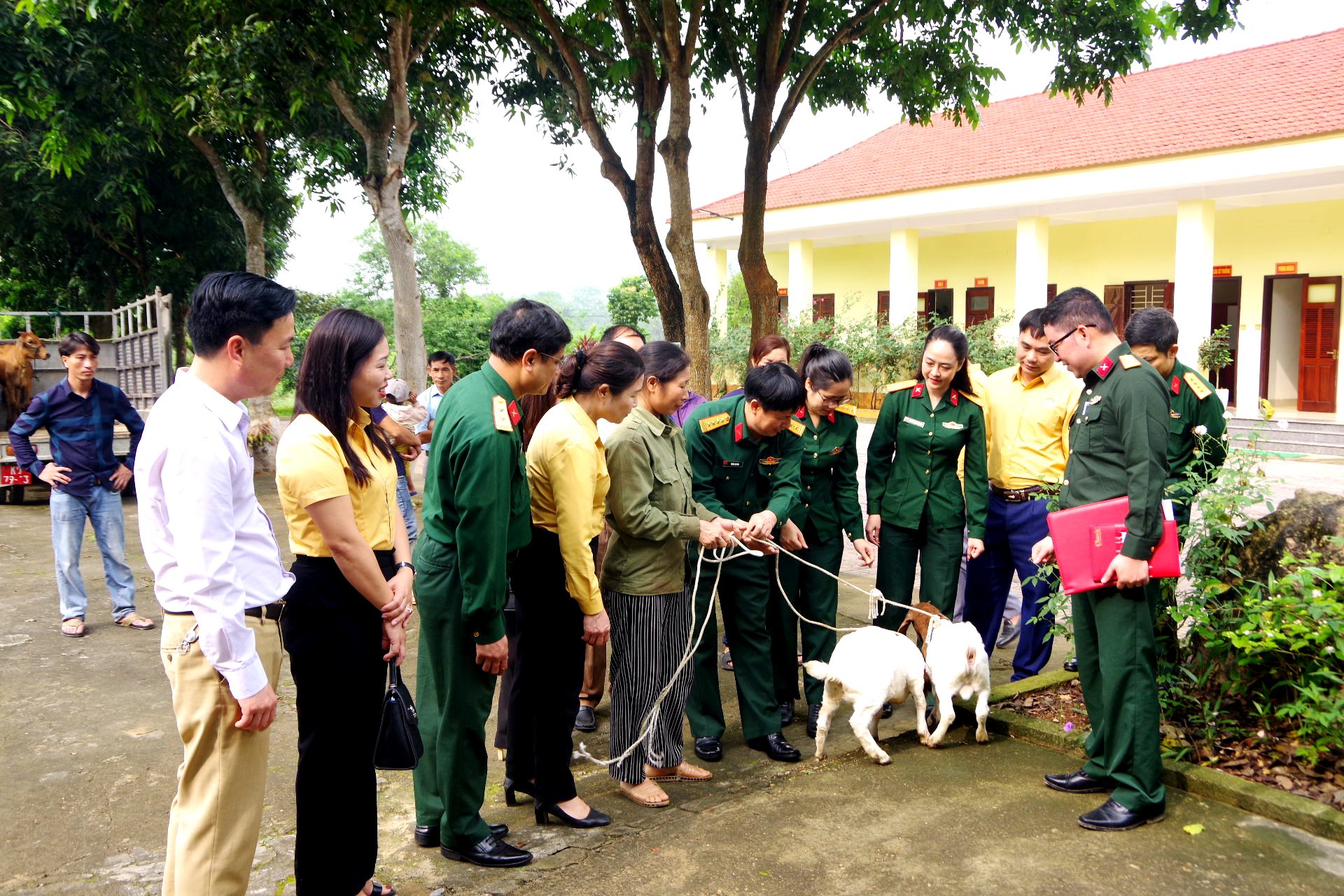 Đoàn công tác đã tặng 01 còn bò giống trị giá gần 10 triệu đồng cho gia đình bà Lê Thị Hằng và tặng 2 con dê giống trị giá gần 6 triệu đồng cho gia đình bà Lê Thị Thìn ở bản Mó, xã Nghĩa Xuân, huyện Quỳ Hợp. Gia đình bà Lê Thị Hằng, chồng bị bệnh hiểm nghèo, kinh tế gia đình đặc biệt khó khăn, thu nhập chủ yếu dựa vào tiền công làm thuê của vợ. Gia đình bà Lê Thị Thìn chồng đã mất, bản thân bà Thìn ốm đau thường xuyên, hiện đang nuôi con nhỏ bị bệnh thiểu năng trí tuệ; kinh tế gia đình đặc biệt khó khăn.