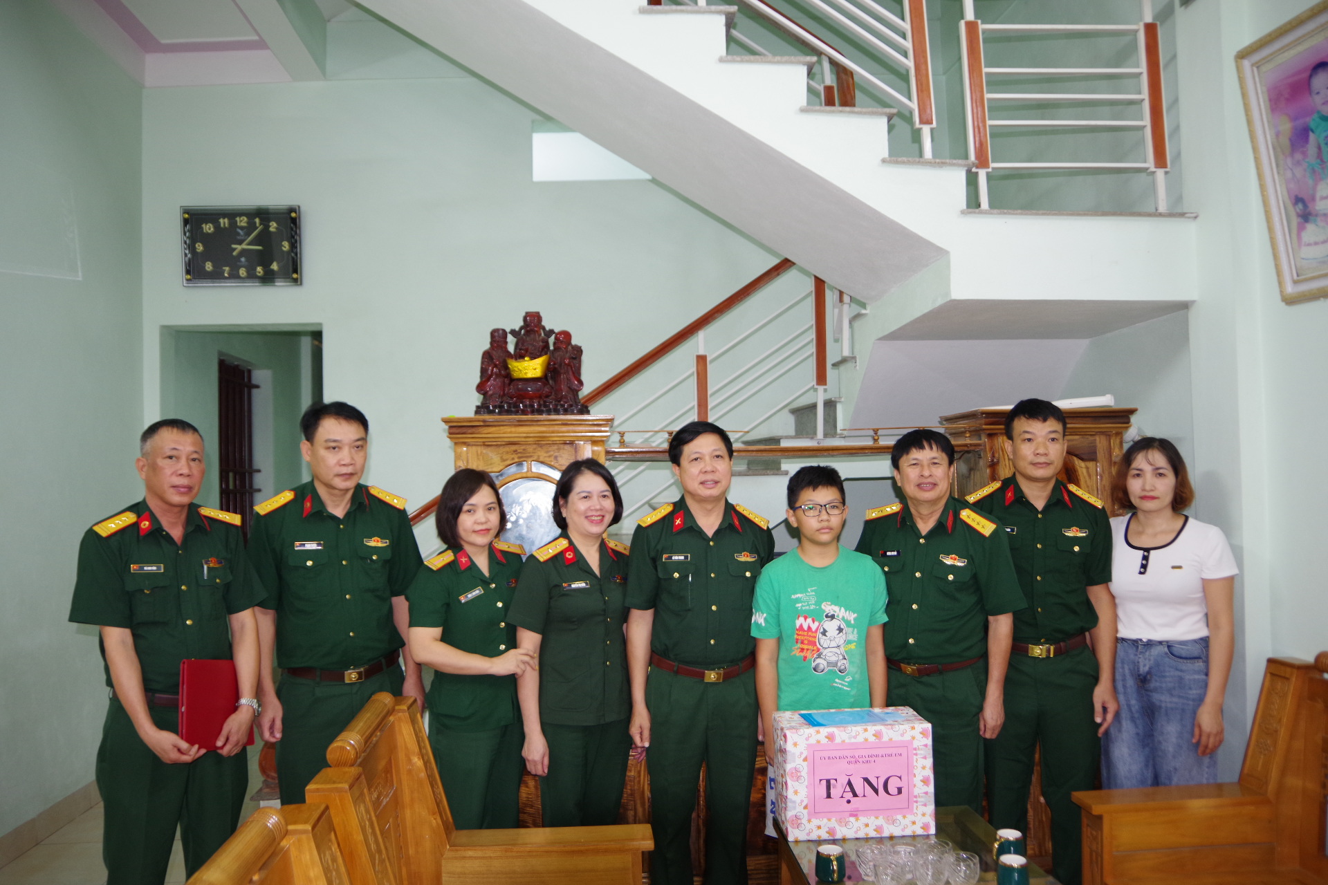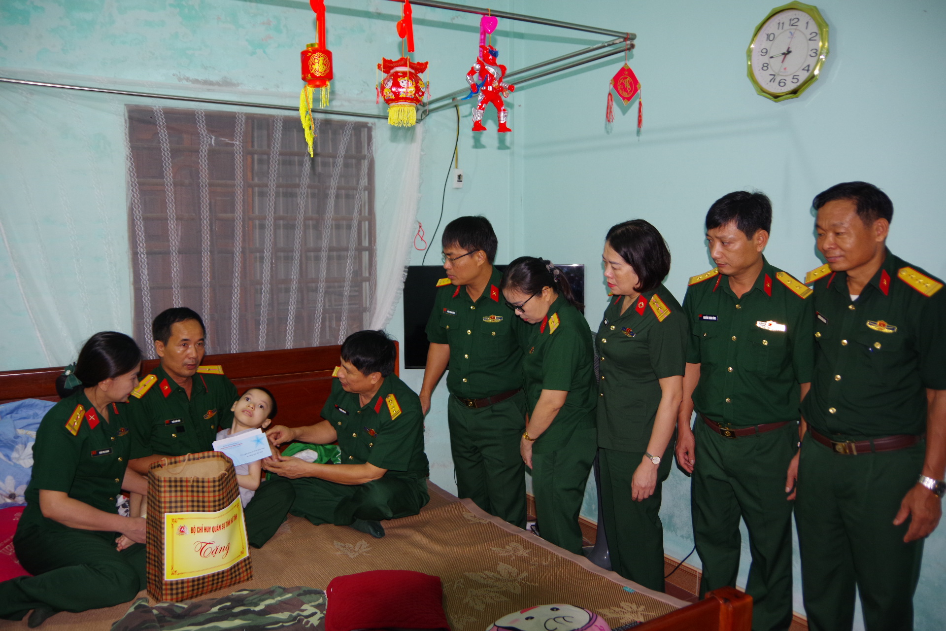 Đoàn công tác đã thăm hỏi, tặng quà gia đình đồng chí Lê Khắc Thành, công tác ở Ban chỉ huy Quân sự huyện Quan Sơn; gia đình đồng chí Ngô Tiến Nam, công tác ở Phòng Tham mưu, Bộ CHQS tỉnh Thanh Hóa; gia đình đồng chí Nguyễn Văn Chiến, công tác ở Kho K19, Bộ Chỉ huy Quân sự tỉnh Hà Tĩnh; gia đình đồng chí Bùi Tất Đạt, công tác ở Phòng Hậu cần – Kỹ thuật và gia đình đồng chí Nguyễn Hữu Lợi, công tác ở Ban CHQS huyện Quảng Trạch/Bộ CHQS tỉnh Quảng Bình. Đây là những gia đình quân nhân có con đạt học sinh giỏi, con bị tàn tật, mắc bệnh hiểm nghèo và con bị di chứng chất độc da cam/dioxin.