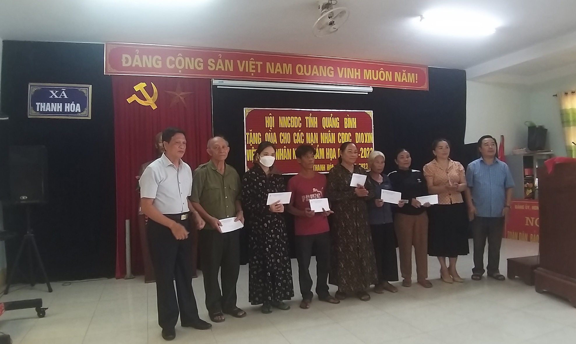 Đoàn công tác do Đại tá Nguyễn Quốc Trị, Chủ tịch Hội NNCĐDC/dioxin tỉnh dẫn đầu. Đoàn đã tặng 40 suất quà, mỗi suất 1 triệu đồng cho 40 gia đình nạn nhân ở huyện Tuyên hóa. Tổ chức trao tập trung tại trụ sở UBND xã Thanh Hóa, Hương Hóa, mỗi xã 15 suất quà. Riêng 02 xã Châu Hóa, Phong Hóa, Đoàn đi trực tiếp để trao 10 suất quà.