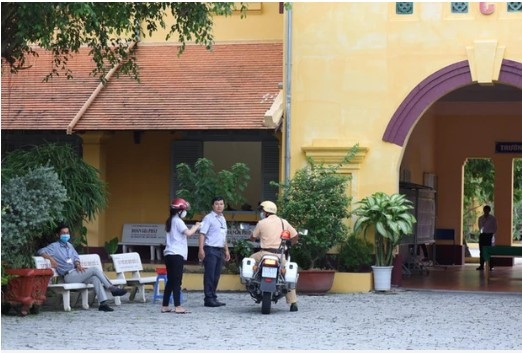| Vào lúc 7h05, Thiếu tá Duy đã đưa nữ thí sinh trở lại điểm thi - Ảnh: Kim Hà. |