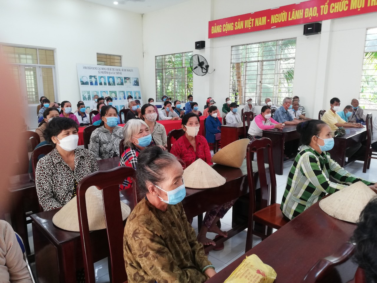 Ban tổ chức mời Hòa thượng Thích Huệ Minh, Trưởng ban Trị sự Giáo hội Phật giáo Việt Nam tỉnh Tiền Giang, bà Dương Thị Lệ, Chủ tịch Hội tỉnh, đại diện thường trực Hội huyện Châu Thành, Thường trực Hội xã Nhị Bình cùng các ban, ngành đoàn thể xã trao tặng những phần quà đầy nghĩa tình của bà Lê Kim Huệ cho các nạn nhân da cam nghèo, góp phần hỗ trợ nhằm giảm bớt khó khăn cho các gia đình nạn nhân.