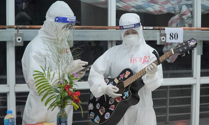 Một tiết mục cây nhà lá vườn của nhân viên y tế Bệnh viện dã chiến số 1 (Đóng tại Ký túc xá ĐH Quốc gia Thành phố Hồ Chí Minh)