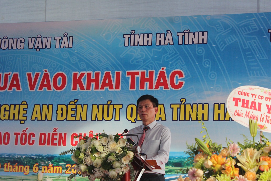 Tại buổi lễ, đồng chí Lê Anh Tuấn - Thứ trưởng Bộ Giao thông vận tải biểu dương sự nỗ lực của các cơ quan, đơn vị doanh nghiệp cùng 2 tỉnh Nghệ An, Hà Tĩnh đã đoàn kết vượt qua khó khăn đưa tuyến cao tốc Diễn Châu - Bãi Vọt về đích đúng tiến độ, mặc dù đây là một trong những tuyến thi công khó khăn với địa hình đồi núi, nền đất cũng như thời tiết khắc nghiệt.