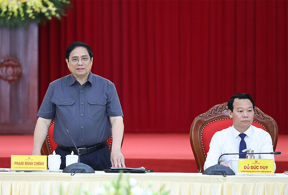 Thủ tướng yêu cầu tỉnh quán triệt, triển khai thực hiện hiệu quả các nghị quyết của Trung ương, Quốc hội, Chính phủ và của tỉnh; phát huy mạnh mẽ những tiềm năng khác biệt, cơ hội nổi trội, lợi thế cạnh tranh của tỉnh, không ngừng đổi mới sáng tạo để phát triển đột phá và hoàn thành tốt các mục tiêu, nhiệm vụ năm 2022 và giai đoạn 2021-2025.