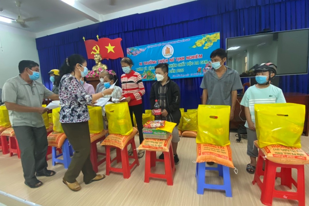 Bà Dương Thị Lệ, Chủ tịch Hội Nạn nhân chất độc da cam/dioxin tỉnh Tiền Giang đến dự Chương trình trao 150 phần quà Tết Nhâm Dần cho 150 nạn nhân chất độc da cam thuộc các huyện: Tân Phú Đông, Gò Công Đông, thị xã Gò Công và Gò Công Tây. Mỗi phần quà gồm: gạo, nhu yếu phẩm trị giá 300 ngàn đồng và 100 ngàn đồng tiền mặt. Tổng giá trị của chương trình là 60 triệu đồng. Trong đó, Ni trưởng Thích nữ Tịnh Nghiêm tài trợ quà trị giá 45 triệu đồng, Quỹ Hội Nạn nhân chất độc da cam tỉnh hỗ trợ 15 triệu đồng tiền mặt.