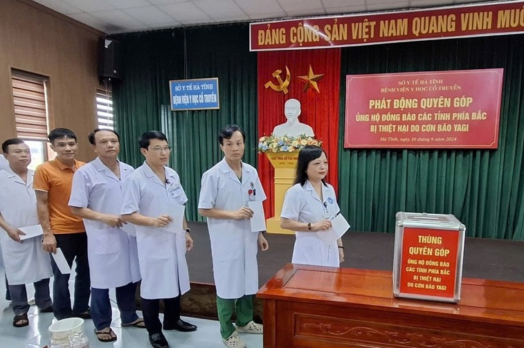 Cán bộ, nhân viên Bệnh viện Y học cổ truyền Hà Tĩnh ủng hộ đồng bào các tỉnh phía Bắc bị thiệt hại do cơn bão số 3