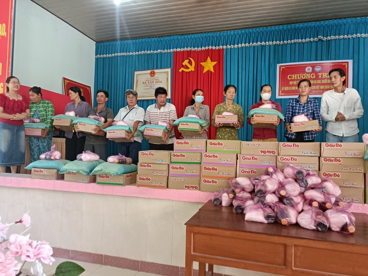 Tại xã Định Thủy, Ban tổ chức đã trao 50 phần quà, mỗi phần quà trị giá 370.000 đồng và 7 suất học bổng, mỗi suất 500.000 đồng cho nạn nhân và con của gia đình NNCĐDC do Nhóm anh em đồng ngư thành phố Thủ Đức (TP. HCM) tài trợ. Tại xã Cẩm Sơn, đã trao 60 suất quà, mỗi suất 300.000 đồng cho gia đình NNCĐDC do bà Phạm Thị Hồng, ở xã Cẩm Sơn tài trợ.