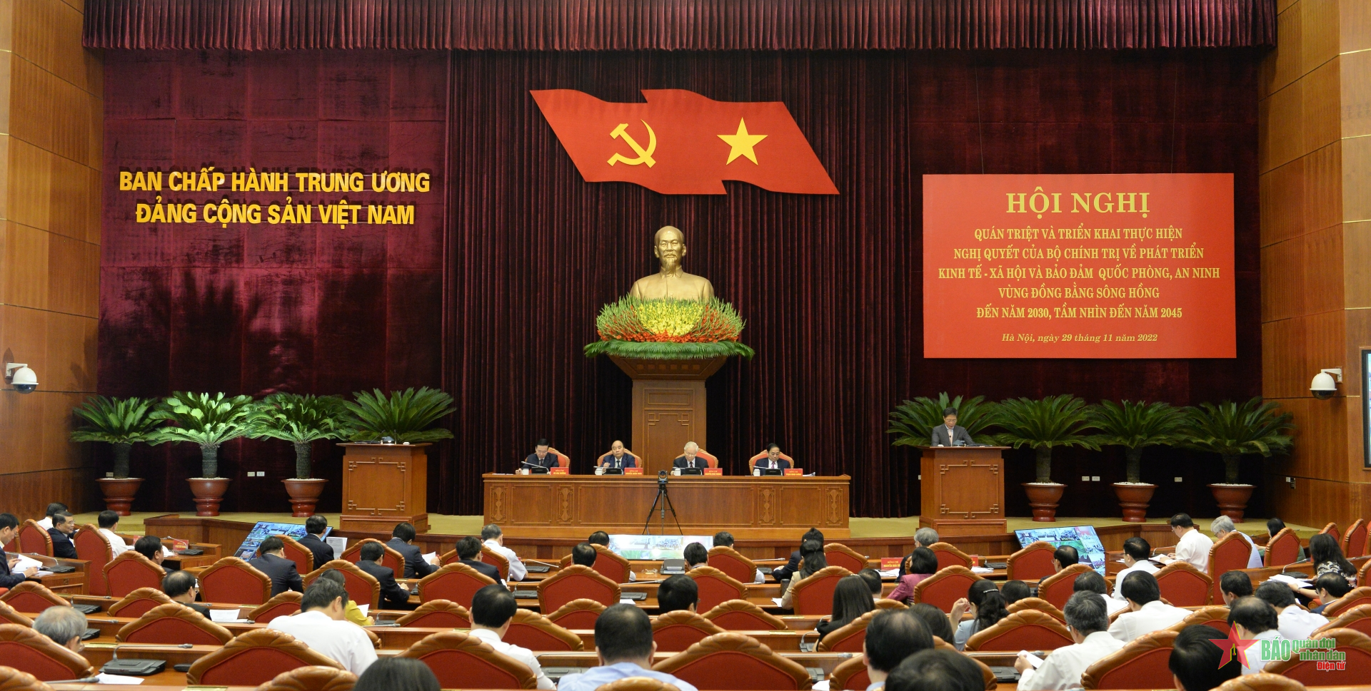 Với tinh thần “Cả nước vì Đồng bằng sông Hồng; Đồng bằng sông Hồng vươn lên cùng cả nước và vì cả nước”, Tổng Bí thư Nguyễn Phú Trọng tin tưởng, cấp ủy, chính quyền và nhân dân các tỉnh trong vùng Đồng bằng sông Hồng cùng với các ban, bộ, ngành Trung ương và cấp ủy, chính quyền các cấp trong cả nước, đã đổi mới, nỗ lực phấn đấu rồi càng đẩy mạnh đổi mới, nỗ lực phấn đấu mạnh mẽ hơn nữa, quyết thực hiện thắng lợi nghị quyết của Bộ Chính trị, tạo ra bước chuyển biến mới có tính đột phá trong việc phát triển kinh tế - xã hội và bảo đảm quốc phòng, an ninh ở vùng Đồng bằng sông Hồng.