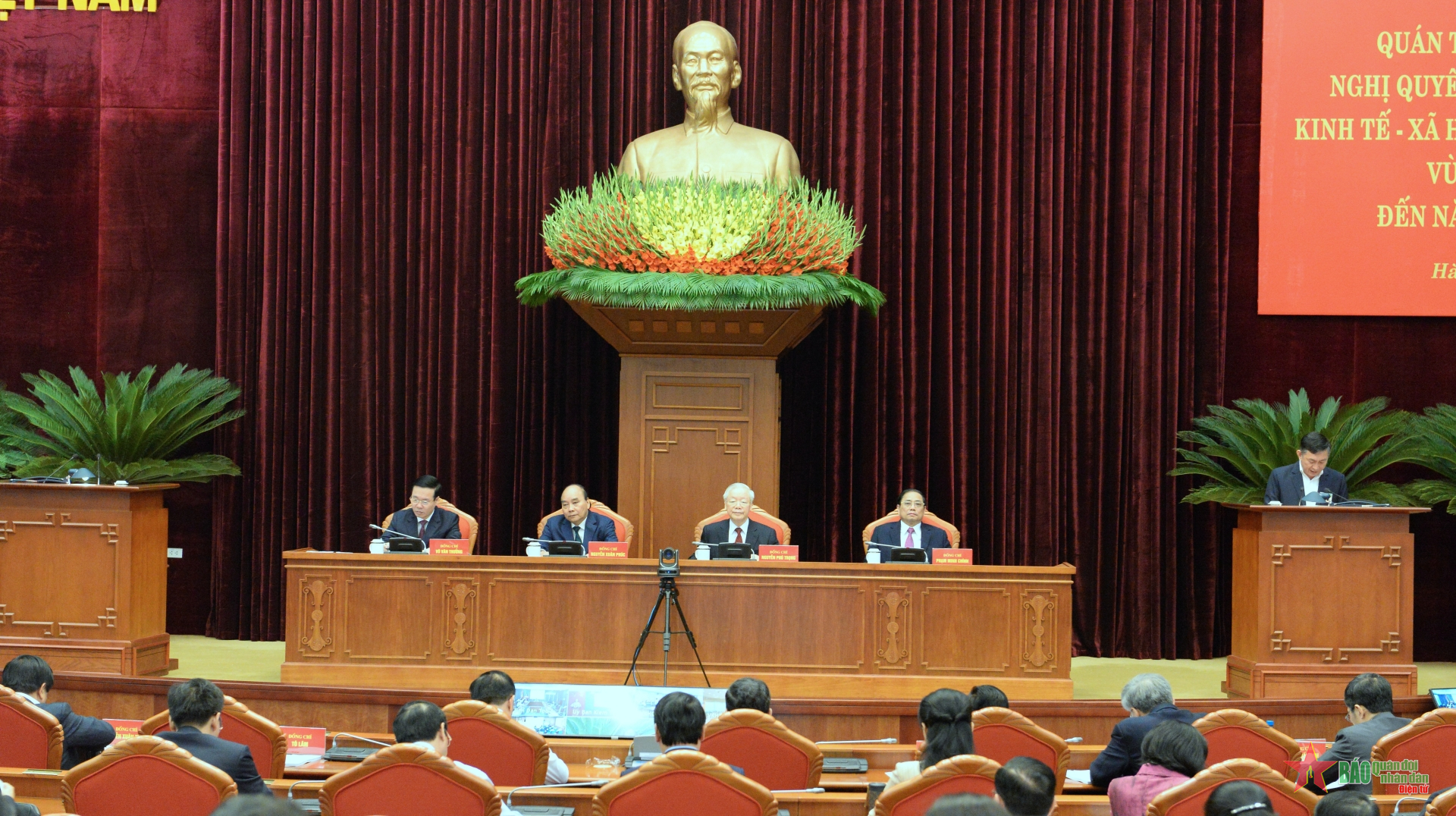 Về nhiệm vụ và giải pháp, Tổng Bí thư Nguyễn Phú Trọng chỉ rõ, nghị quyết lần này đề ra đầy đủ, đồng bộ các giải pháp, đáp ứng yêu cầu của giai đoạn phát triển mới, bao gồm các nhóm nhiệm vụ, giải pháp về hoàn thiện thể chế, chính sách phát triển và đẩy mạnh liên kết vùng; chuyển dịch cơ cấu kinh tế vùng gắn với đổi mới mô hình tăng trưởng để phát triển nhanh và bền vững vùng, các tiểu vùng và các địa phương trong vùng; phát triển khoa học - công nghệ, đẩy mạnh đổi mới sáng tạo, chuyển đổi số; phát triển văn hóa, xã hội, nâng cao đời sống vật chất và tinh thần của nhân dân; quản lý, sử dụng có hiệu quả tài nguyên, bảo vệ môi trường, thích ứng với biến đổi khí hậu; bảo đảm vững chắc quốc phòng, an ninh; xây dựng, chỉnh đốn Đảng và hệ thống chính trị thật sự trong sạch, vững mạnh...