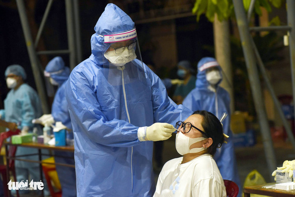 Người dân phường 5, quận Gò Vấp (TP.HCM) được lấy mẫu xét nghiệm COVID-19 - Ảnh: Tuổi trẻ
