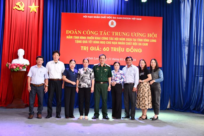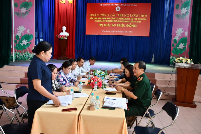Tại buổi làm việc, ông Võ Văn Hoàng, Phó Chủ tịch phụ trách NNCĐDC đã trình bày báo cáo, bà Võ Thị Thủy, Chủ tịch Hội và các đại biểu dự buổi làm việc phát biểu. Qua đó đã nêu rõ: Thuận lợi cơ bản của Hội là được cấp ủy, chính quyền địa phương quan tâm, tạo điều kiện; xác định rõ Hội NNCĐDC/dioxin là 1 trong 11 Hội do Đảng, Nhà nước giao nhiệm vụ ở tỉnh. Tuy nhiên, cũng còn nhiều khó khăn, vướng mắc là: tổ chức Hội sau hợp nhất 3 tỉnh có nhiều biến động; trong khi đó, 3 tỉnh hợp nhất là: Vĩnh Long, Bến Tre, Trà Vinh, mỗi tỉnh có tổ chức Hội theo hình thức khác nhau; chế độ thù lao cũng khác nhau. Địa phương chờ các chỉ thị, hướng dẫn của Trung ương thời gian lâu nên ảnh hưởng nhiều đến giải quyết kinh phí, chế độ, tâm tư của cán bộ Hội; một số tổ chức hội còn nợ đọng kinh phí hoạt động mà không quyết toán được…