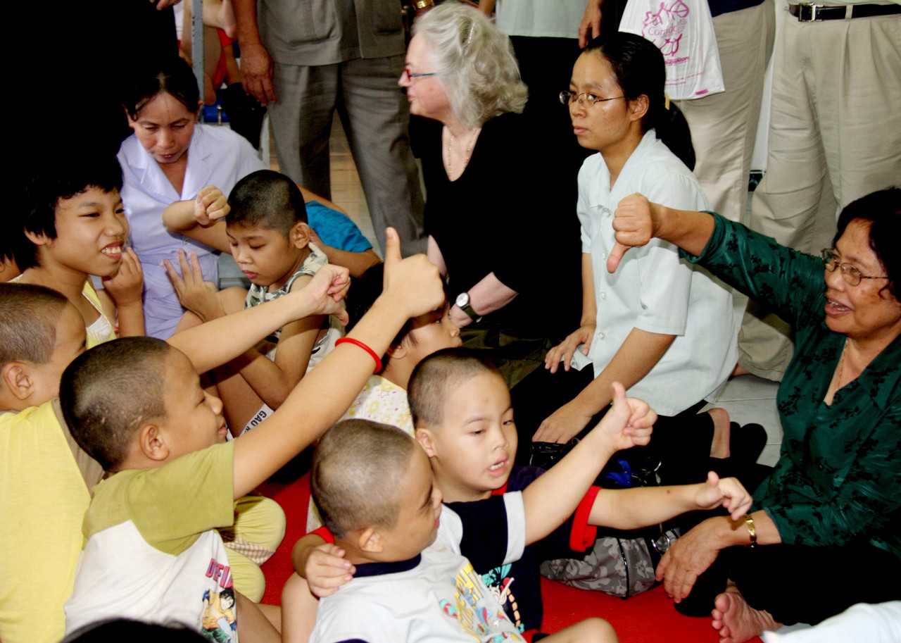 Bà Nguyễn Thị Ngọc Phượng, Phó chủ tịch Hội NNCĐDC/dioxin Việt Nam cùng bạn bè thế giới thăm một trung tâm nuôi dưỡng NNCĐDC